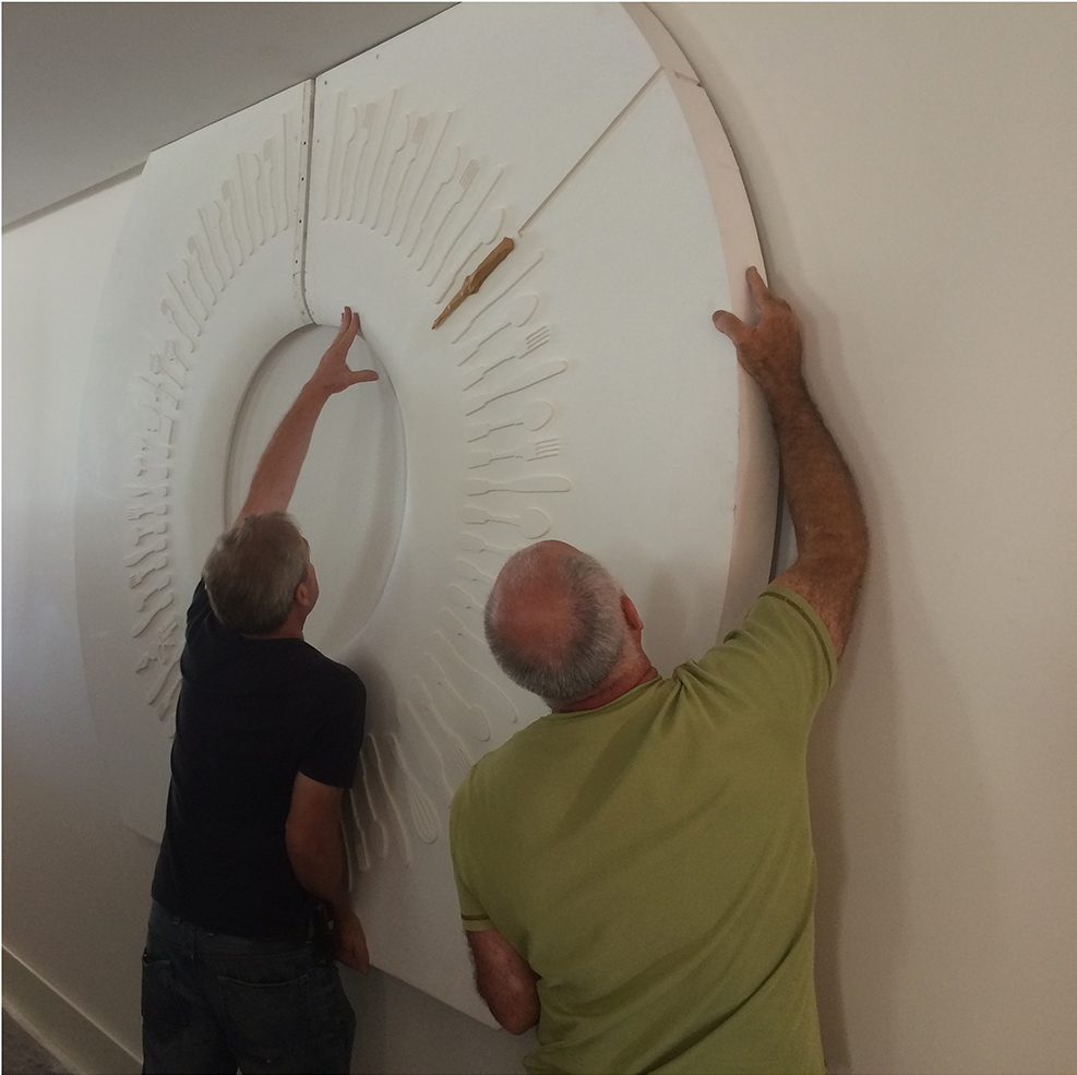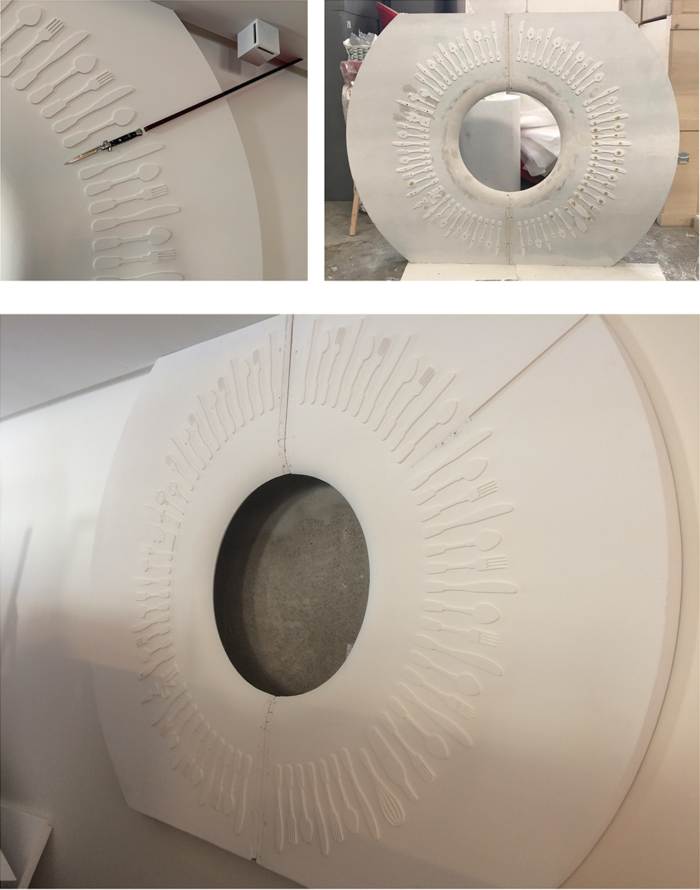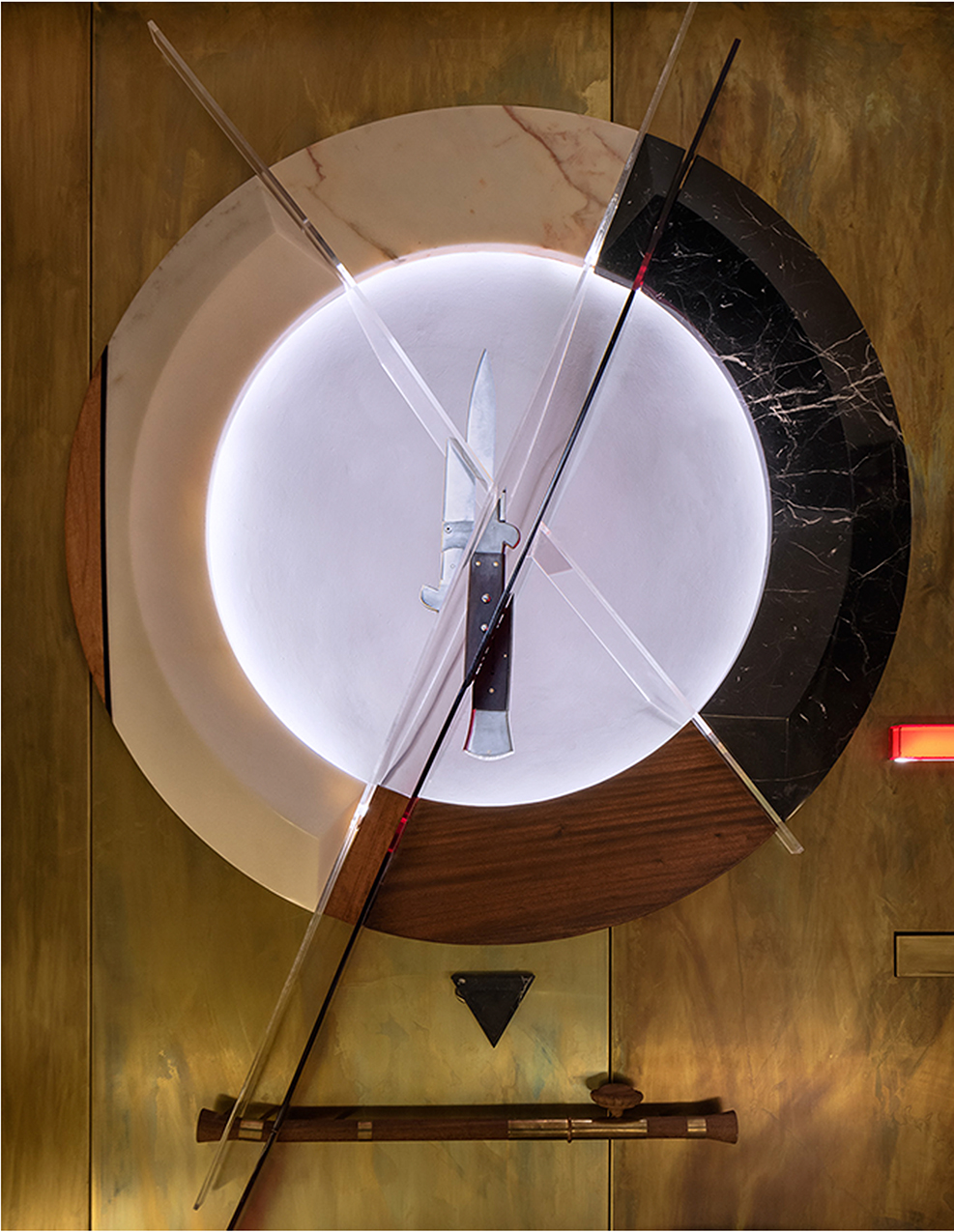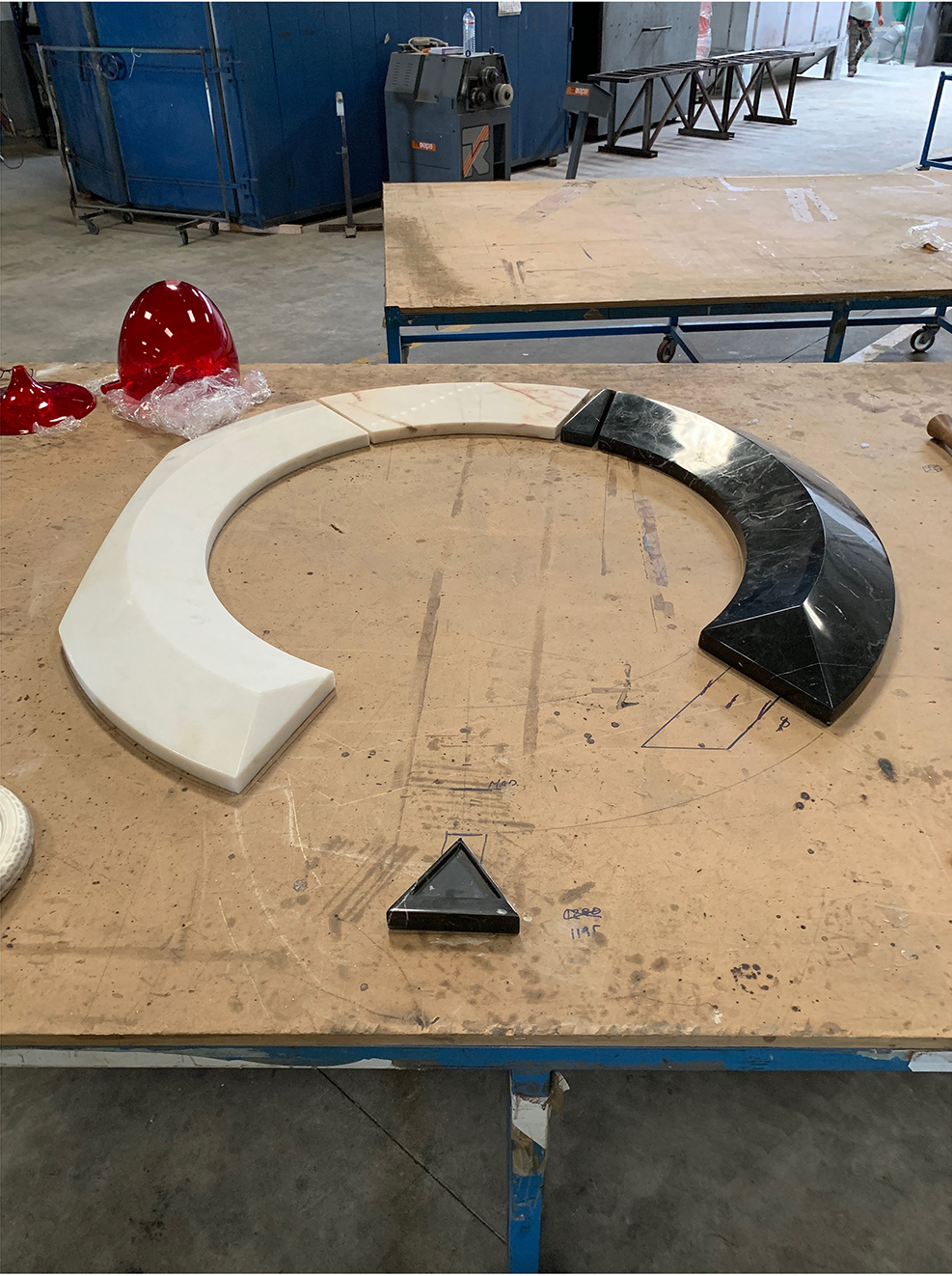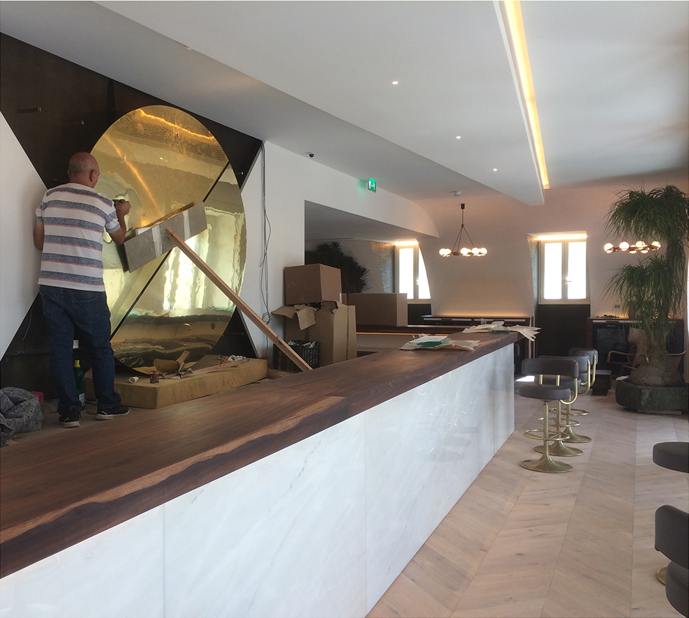Creating and producing big dimensions art installations for the venue. Designing and producing exterior and interior furniture. Finding the tree, that was cut 40 years ago, for the 14 meters long bar counter. The huge marble block for the 9 meters kitchen counter. All different suppliers to manage.
