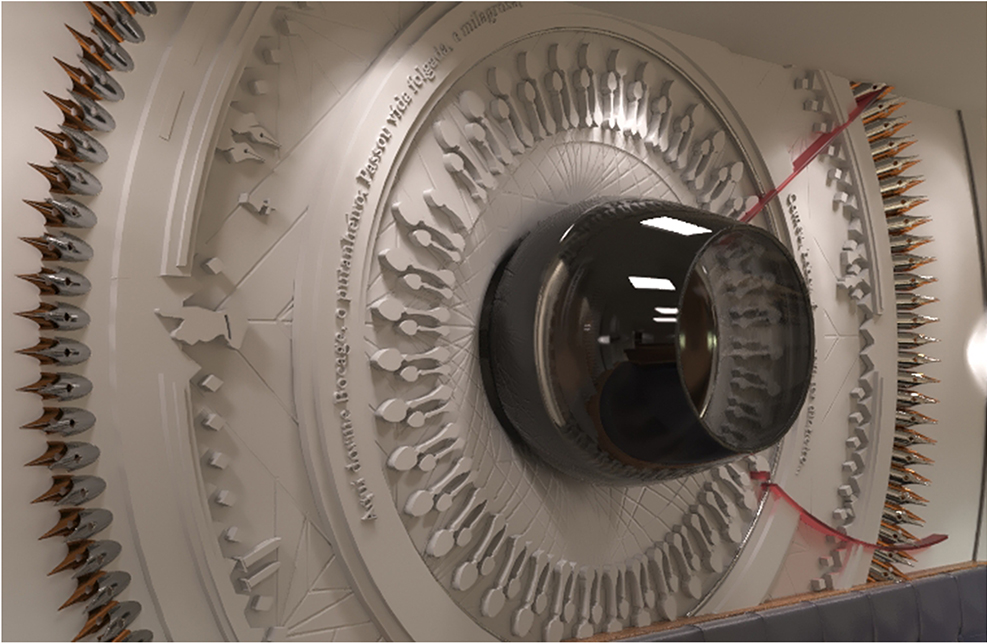 We wanted the intervention to be part of the architecture. telling the history of medicine since antiquity, combining art with architecture.
