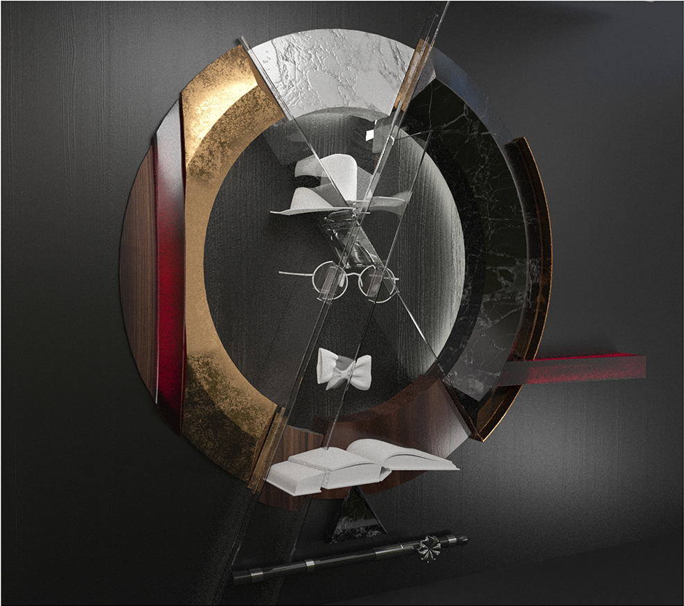 We worked the actual glass components in king size version, creating a huge laboratory trajectory.
